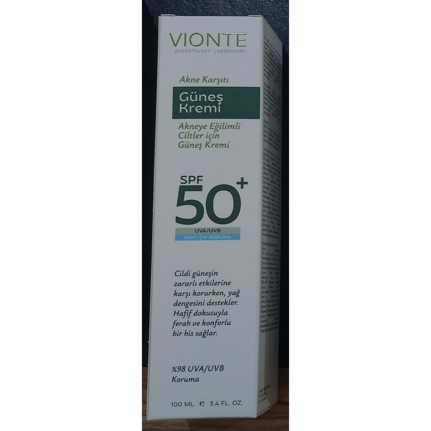 VİONTE SPF50+ GÜNEŞ KREMİ AKNEYE MEYİLLİ CİLTLER İÇİN 100 ML SKT:08/2028